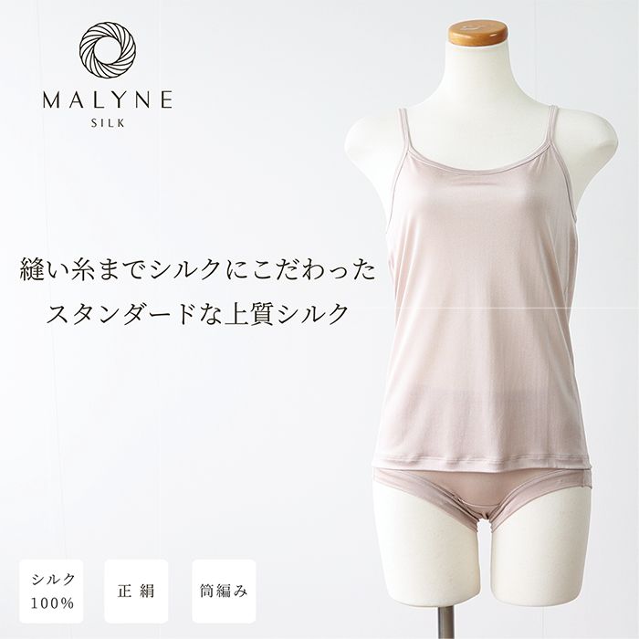 希少な正絹を伸びの良い天竺編みで仕立てたのが、MALYNE SILK の正絹シルク100%インナーシリーズです。