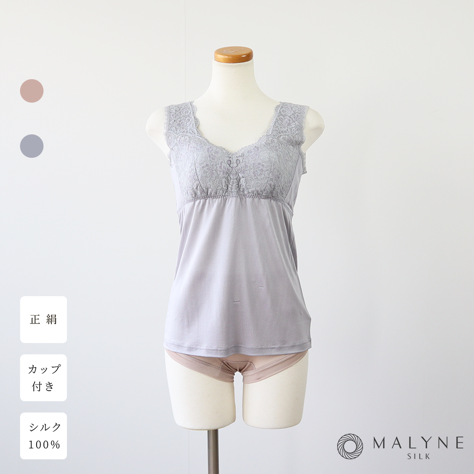 廃盤色|3Lサイズあり|正絹シルク100% ソフトカップ付き レースキャミソール