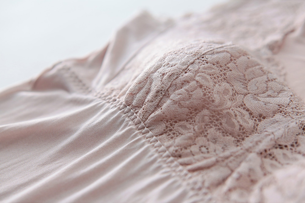 レースはシルクの身生地に乗せていますので、チクチクしません。